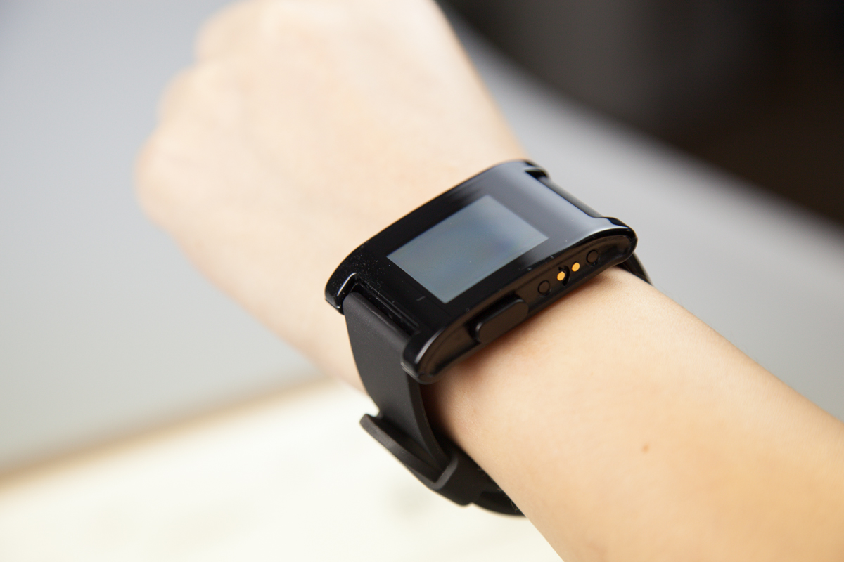 Pebble采用的是自称为电子纸的屏幕,屏幕是黑白的,是一个114×168像素的“半透半反”(Transflective)液晶屏。而这么一个低分辨率的屏幕也就别想着能给你多么漂亮的效果。它不是手机屏幕,它只是手机的第二屏幕,只是起个提醒功能。而更重要的是省电,充满电的情况下可以使用7天,所以采用这种屏幕我们也是可以理解的。另外这种屏幕在太阳光下得表现也是非常不错的,而普通的液晶屏就很难实现这一效果了。