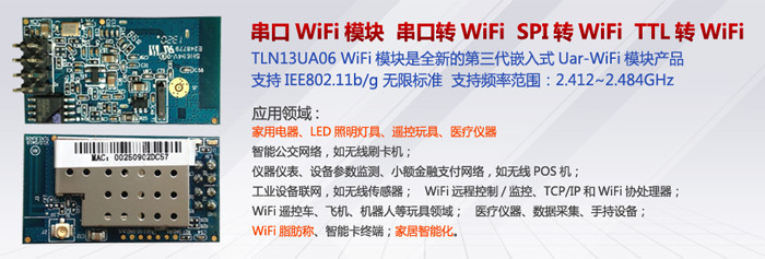 Wi-Fi智能空气净化器控制方案中对洗衣机嵌入式开发是比较重要的一步,这样才能在硬件上实现无线数据转换以及无线控制。我司主要采用的串口wifi模块TLN13UA06,它是新一代嵌入式Wi-Fi模块产品,软、硬件接口全面兼容 TLG10UA03,体积小,功耗低。