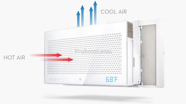 在APP上,我们能知道空调每天和每月的耗电费用,Aros能够根据未来的天气预报以及用户的预算提供合理的设置,从而节省能源浪费。当用户离开家时,Aros根据用户的智能手机的 GPS位置距离 自动关闭空调;当用户回到家时,空调已经开启并调节到合适的温度和风速,再也不要担心房间会潮湿或者太热。智能空调通过学习用户的习惯,能够知冷知热。预测用户起床时、周末在客厅休息时、工作时、刚到家时分别需要什么样的温度和风速。Aros的外观设计还是比较靓丽大气,前部和上部的气流风道设计,增加了空气循环频率。三种制冷模式和三个风速调节按钮都是触控的,和 LED 显示灯在同一个面板上。背面的可伸缩机翼结构可以确保智能空调和窗台保持同样的宽度,方便安装。