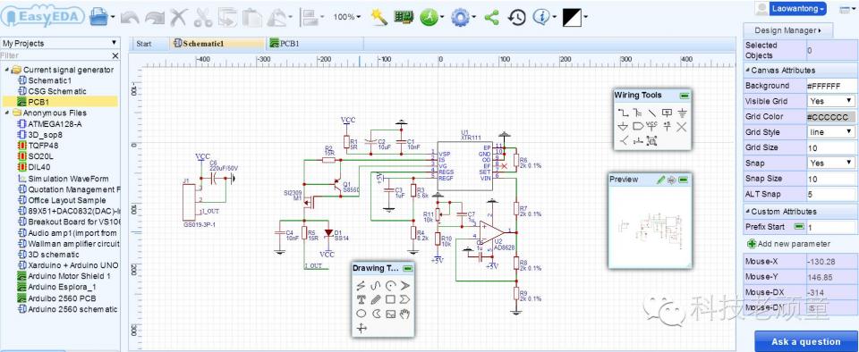 由于调试需要,刚画了一个0~25mA信号发生器。 与以往画板不同的是,这次我是在云端画的。 我使用的画图软件名称叫做EasyEDA,这是一款在浏览器上进行操作的免费的画图软件。 有人说,那岂不是必须有网才能用?答:错!。只要你用浏览器打开过EasyEDA,即使断了网也可以使用。只是离线使用的保存文件方法与在线使用的保存方法略有不同,详见官方手册。