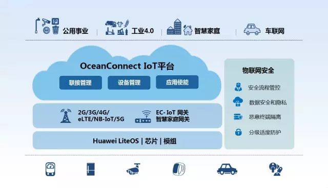 聚焦ICT基础设施,聚合生态圈。在物联网领域,华为主要提供:开源物联网操作系统Huawei LiteOS,IoT通信模组和芯片,eLTE/NB-IoT/5G无线接入网络,企业物联网关及智慧家庭网关,IoT联接管理平台,以及IoT网络集成服务。