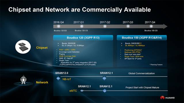 华为NB-IoT芯片为Boudica 120 和 Boudica 150。