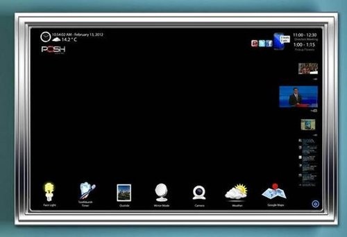 POSH多点触摸互动镜非常有科技感,只要触摸它右下角一个小小的发光按钮,可定制的应用和小部件就会出现在镜子上,而且你也可以继续如常照镜子。POSH跟你的智能手机相连接,你可以在镜子上检查电邮和短信、Twitter消息、天气和交通状况,也可以观看电视和视频、体育新闻。